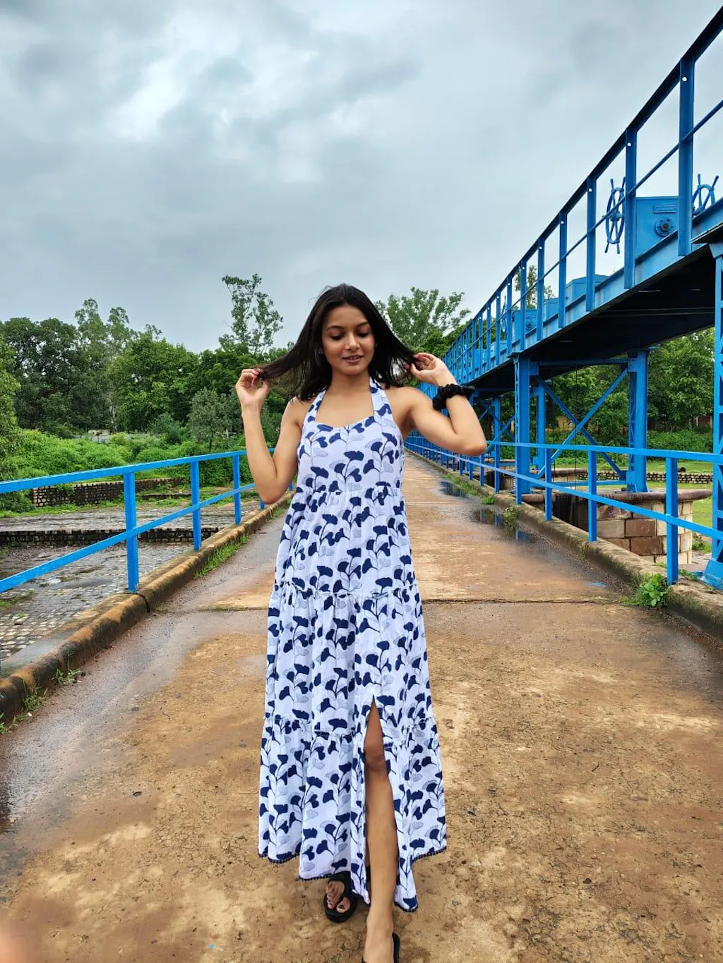 Indulge in the epitome of summer sophistication with our hand block printed cotton Long Dress featuring a chic halter neck design that adds a touch of allure to your wardrobe. Crafted from breathable and lightweight cotton, this dress is both comfortable and stylish, making it the perfect choice for warm-weather days and evening soirees. The halter neck gracefully ties into a bow at the back, allowing you to customize the fit while adding an elegant and playful element to your look.